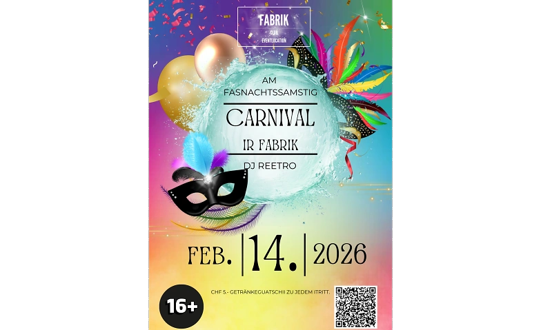 Am Fasnachtssamstag, 14.02.2026, wird die Fabrik in Chur zum ultimativen Party-Hotspot! Feiert mit uns eine unvergessliche Nacht voller guter Musik, kreativer Kostüme und ausgelassener Stimmung.