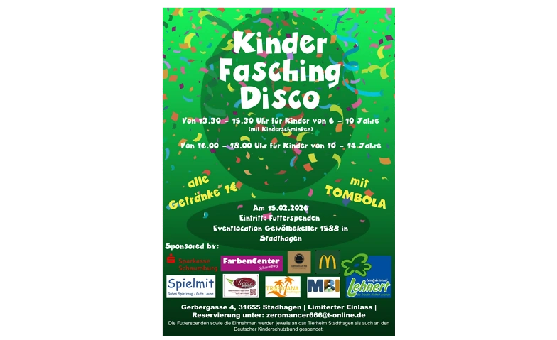 Kinder Fasching Disco Gewölbekeller 1588, Gerbergasse 4, 31655 Stadthagen Tickets