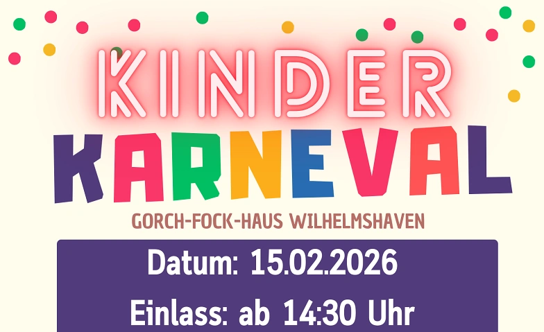 Kinderkarneval in Wilhelmshaven Gorch-Fock-Haus, Victoriastraße 15, 26382 Wilhelmshaven Tickets