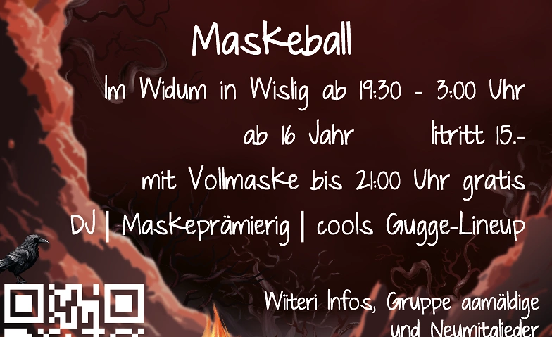 Maskenball Wislig im Widum ab 19:30 Uhr - 03:00 Uhr ab 16 Jahr Eintritt: Fr. 15.00 mit Vollmaske bis 21:00 gratis DJ Maskenprämierung cools Gugge-LineUp