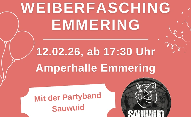 Am 12. Februar 2026 ist es endlich wieder soweit: Der traditionelle Weiberfasching in der Amperhalle Emmering öffnet wieder seine Türen!🥳 Los geht’s um 17:30 Uhr. Bis 18 Uhr dürfen sich alle Gäste auf einen kostenlosen Welcome-Prosecco freuen.🥂
