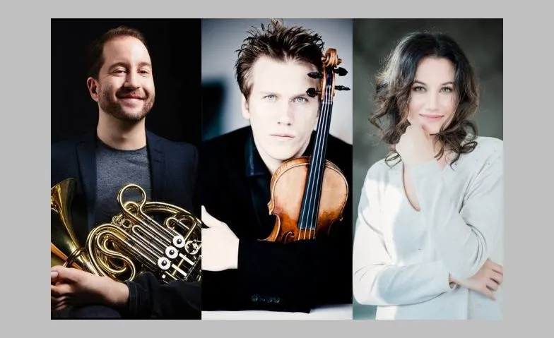 Das Trio mit Felix Klieser, Andrej Bielow und Martina Filjak lädt zu einem Abend voller kammermusikalischer Feinheit ein: Von Koechlins poetischen Miniaturen über Schumanns leidenschaftliches Adagio und Allegro bis zu Brahms’ expressiver Violinsonate spannt das Trio einen weiten musikalischen Bogen. Den Höhepunkt bildet Brahms’ berühmtes Horntrio – ein Werk, das romantische Innigkeit, virtuose Brillanz und transparente Klangkunst eindrucksvoll vereint. Programm: Charles Koechlin (1867-1950) Quatre petites pièces, op. 32 Robert Schumann (1810-1856) Adagio und Allegro As-Dur für Horn und Klavier, op. 70 Johannes Brahms (1833-1897) Sonate für Violine und Klavier Nr. 3 d-Moll, op. 108 Frédéric Nicolas Duvernoy (1765-1838) Trio Nr. 1 c-Moll für Violine, Horn und Klavier Johannes Brahms (1833-1897) Horn-Trio in Es-Dur, op. 40 Boswiler Künstlergespräch: 16.15 Uhr Solist: Felix Klieser, Horn Andrej Bielow, Violine Martina Filjak, Klavier