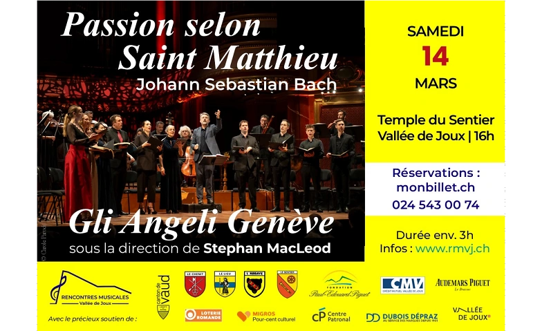 Gli Angeli Genève – "Passion selon Saint Matthieu" de Bach Temple du Sentier, Grand Rue, 1347 Le Sentier Tickets