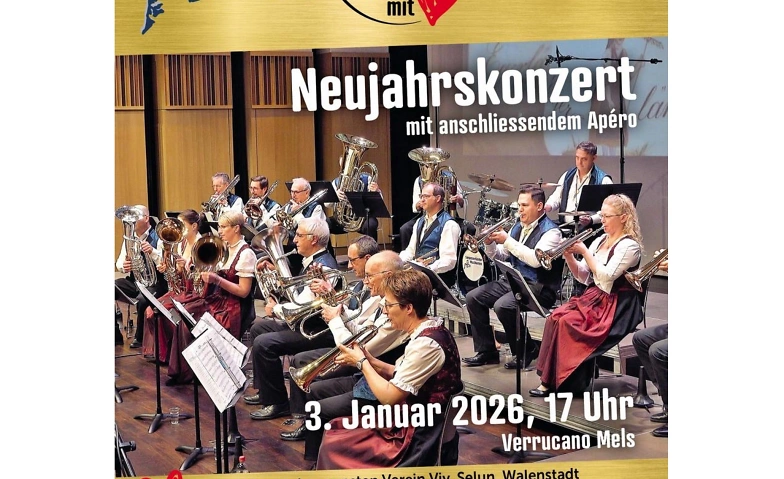 Ein Blick auf den Kalender, und die Zeit beginnt leise zu glänzen: Die Feiertage nähern sich wie ein sanfter Lichtschein am Horizont und das neue Jahr kündigt sich in stiller Erwartung an. Inmitten dieser besonderen Atmosphäre laden die «Sarganserländer Musikanten» Sie herzlich ein, am 3. Januar 2026 um 17.00 Uhr das traditionelle Neujahrskonzert im "Verrucano" in Mels zu feiern. Gleichzeitig starten die Musikanten in das 50. Jubiläumsjahr.