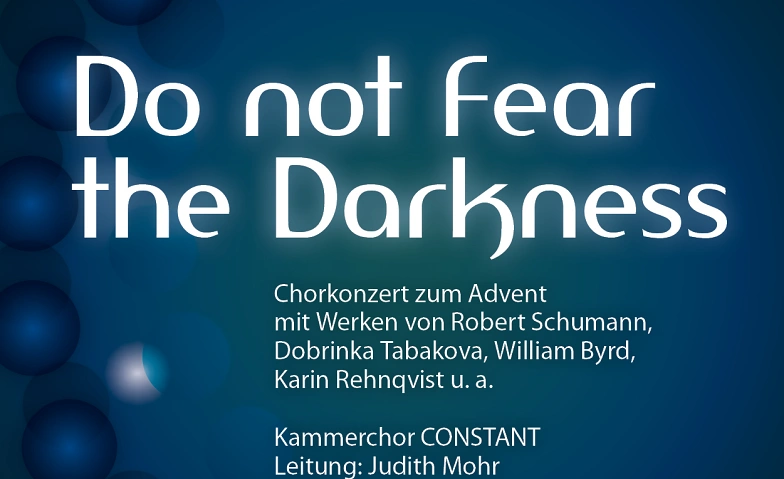 Licht und Dunkelheit sind das Thema der diesjährigen Adventskonzerte des Kammerchor CONSTANT. Wir laden Sie dazu ein, der Dunkelheit und dem Licht bewusst zu begegnen, sie in einen Zusammenhang zu bringen und die scheinbare Gegensätzlichkeit zu überwinden. Unter dem Titel „Do not Fear the Darkness“ erklingen verschiedene Werke, die sich mit dieser Thematik auf unterschiedliche Weise beschäftigen. Der schwedischen, zeitgenössischen Komponistin Karin Rehnqvist gelingt dieses eindrucksvoll in den beiden Stücken „Var inte rädd för mörkret“ („Do not fear the darkness“) und „Natt över jorden“ („Night on our Earth“). Himmel und Sterne begleiten uns inhaltlich in Kompositionen von Giovanni Pierluigi da Palestrina („Rorate coeli“), Teilen aus Arnold Mendelssohns Adventsmotette und in Robert Schumanns „An die Sterne“. Zwei ganz unterschiedliche Werke von William Byrd und der britisch-bulgarischen Komponistin Dobrinka Tabakova interpretieren den Psalm 126, in dem der berühmte Satz „Die mit Tränen säen, werden mit Jubel ernten“ auftaucht. Am Ende erklingt das kraftvolle Stück „Talismane“ von Robert Schumann, welches mit Goethes Worten Gottes allumfängliche Kraft preist. So hoffen wir, Sie mit diesem Konzert in eine leuchtende Adventszeit zu begleiten.