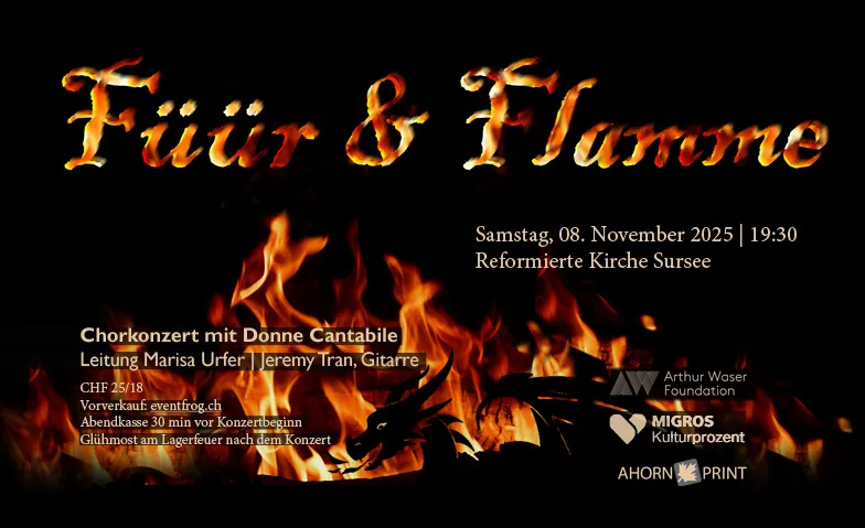 Erleben Sie einen magischen Abend voller Leidenschaft und Emotionen mit dem Frauenchor Donne Cantabile unter der Leitung von Marisa Urfer. Unter dem Titel «Füür & Flamme» präsentieren wir ein mitreissendes Programm, das Sie in eine Welt aus Klängen und Gefühlen entführt und dabei das Thema Feuer in all seinen Facetten besingt.