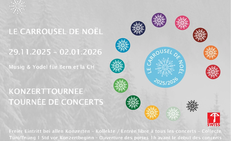 Der, aus dem Traum entstandene Projektchor, LE CARROUSEL-DE-NOËL, verbindet musikalisch die Regionen Bern, Biel/Bienne, Seeland & Berner Jura! Und genau in diesen Regionen wird uns die Konzerttournee an 6 verschiedene Orte führen.
