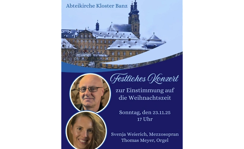 Nun werden die beiden ein festliches Konzert zur Einstimmung auf die Weihnachtszeit am 23.11.2025 um 17 Uhr in der Abteikirche von Kloster Banz gestalten. Schließen Sie die Augen und genießen Sie bekannte Werke aus der Advents- und Weihnachtszeit, die gekonnt von Svenjas warmer Stimme und Thomas Orgelkunst dargeboten werden. Der warme, angenehme Klang der Banzer Orgel wird für diese Art von besonderer Weihnachtsmusik der ideale Partner sein.