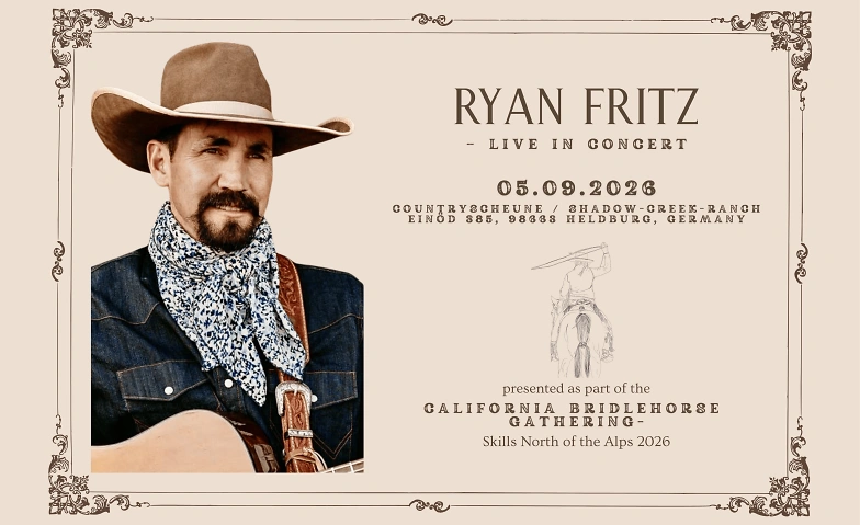 On Saturday, September 5, 2026, Canadian singer-songwriter, Wrangler Heritage Award winner, and cowboy Ryan Fritz will be performing live at Shadow Creek Ranch in Einöd / Heldburg, Germany.