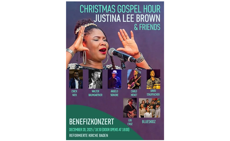 Christmas Gospel Hour with Justina Lee Brown and Friends Reformierte Kirche Baden, Bahnhofplatz, 6, 5400 Baden Tickets
