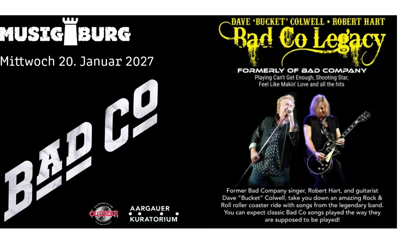 Am 20. Januar 2027 bringt Bad Company – Legacy feat. Dave Colwell & Robert Hart den legendären Sound einer der größten Rockbands aller Zeiten in der Musigburg.