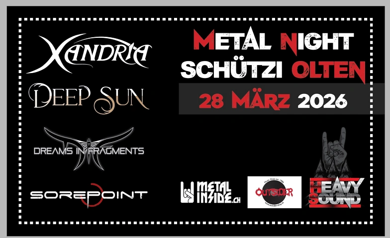 Nach dem erfolgreichen Auftakt geht die Konzertreihe von Heavysound in die nächste Runde: Am 28. März 2026 bebt die Schützi Olten erneut, wenn Metal-Fans aus nah und fern zusammenkommen, um eine Nacht voller kraftvoller Musik, Energie und Emotionen zu erleben.