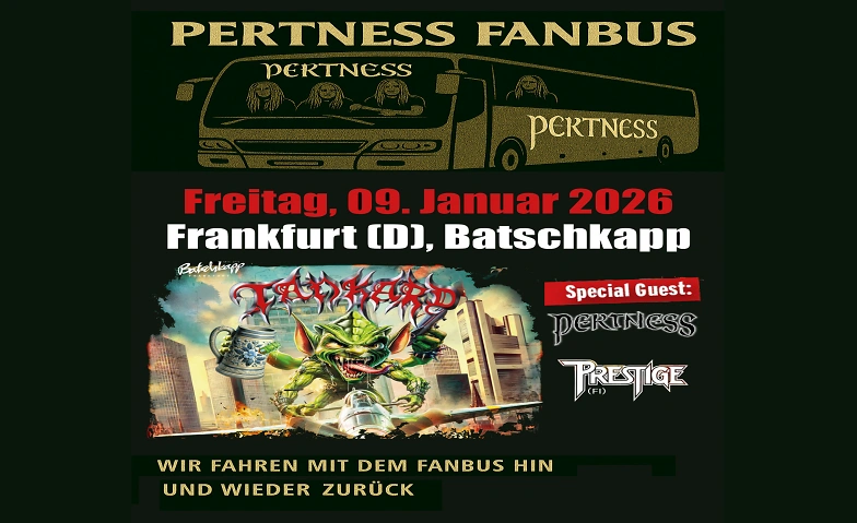 Pertness Fanbus nach Frankfurt - Tankard, Pertness, Prestige is organised by:
