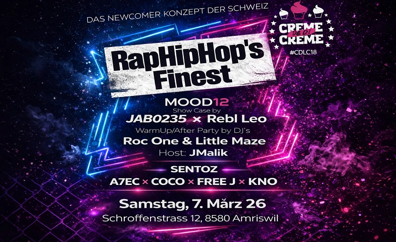 RapHipHopSFinest Sa7Maerz Mood12Club Mood12, Schrofenstrasse 12, 8580 Amriswil Tickets