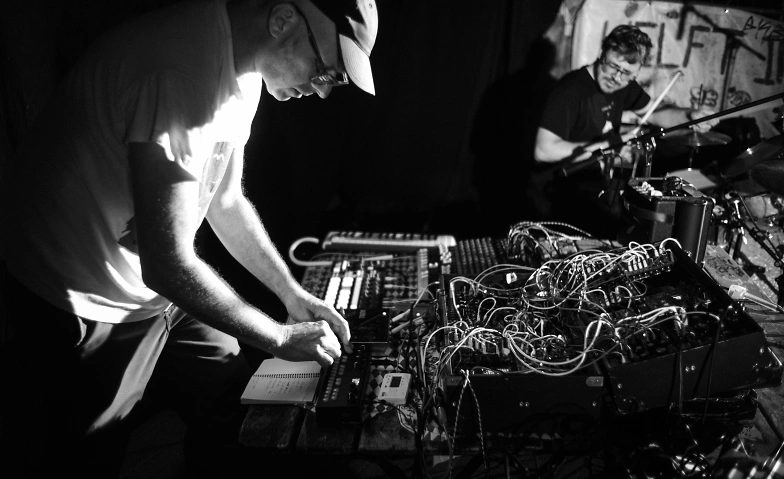 Ausgehend vom impulsiven, treibenden Zusammenspiel von Schlagzeug und sensibler Perkussion (Andi Haberl) und modularem Synthesizer (Florian Zimmer) entstehen fiebrige, frei schwebende Klanggebilde, die die