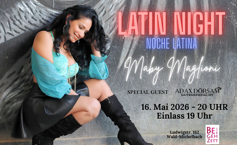 Am Samstag, den 16. Mai 2026, verwandelt die charismatische Sängerin Maby Maglioni Wald-Michelbach in ein Zentrum lateinamerikanischer Lebensfreude. Wenn Sie Fernweh haben und Sehnsucht nach Rhythmus, Tanz und echter Leidenschaft verspüren, ist diese „Noche Latina“ genau das Richtige für Sie.