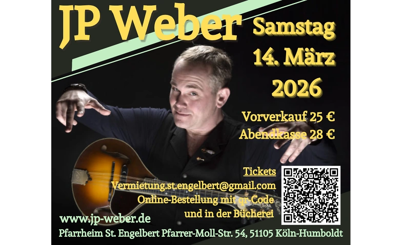 Wir freuen uns JP Weber am 14. März 2026 im Pfarrheim St. Engelbert, Köln-Humboldt, begrüßen zu dürfen