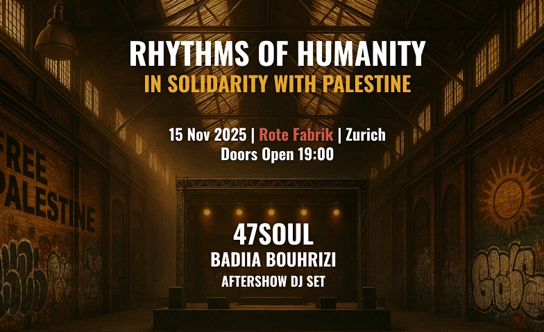 Join us for an event in solidarity with Palestine featuring electrifying performances by 47Soul, Badiia Bouhrizi, and an Aftershow DJ Set