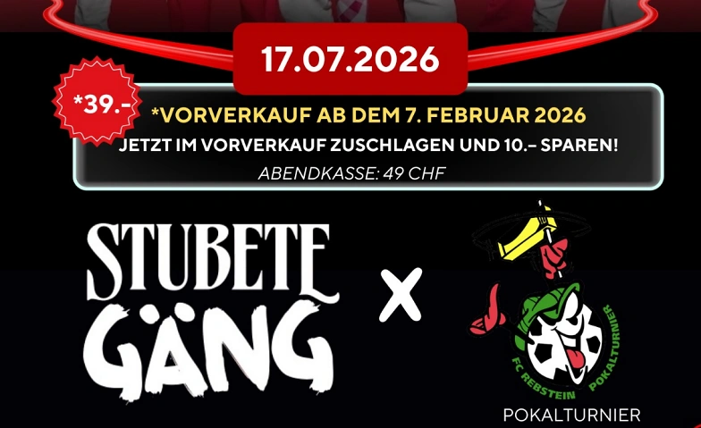 Stubete Gäng x Pokalturnier Rebstein - 17.07.2026 Pokalturnier Rebstein, Bahnstrasse 1, 9445 Rebstein Tickets