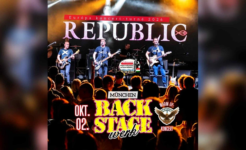 A Republic 2026 őszén útra kel, hogy Európa szívében is felcsendüljenek azok a dalok, amelyek generációkat kötnek össze. 2026. október 2. (péntek) München – Backstage Werk, a legnagyobb terem