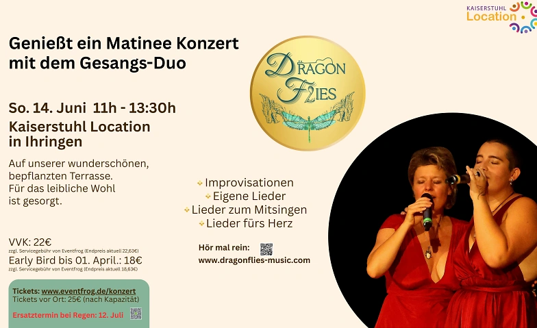 Genießt ein Matinee-Konzert mit dem Gesangs-Duo Rebecca von Faber & Carola Fürbaß live auf unserer wunderschönen, bepflanzten Terrasse in der Kaiserstuhl Location.🌿