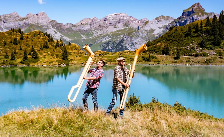 Mit zwei Alphörnern, Jodel und E- Piano geht es auf eine musikalische Reise – mit nahen und fernen Rhythmen, über Stock und Stein, durch saftige Klangweiden und weit offene Tonhorizonte.