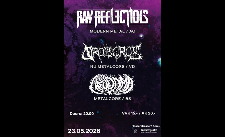 Im Jugendkulturhaus Flösserplatz treffen drei aufstrebende Acts der Schweizer Metal- und Core-Szene aufeinander und vereinen unterschiedliche Facetten von modernem Metal und Metalcore. Gemeinsam sind die drei Bands Teil dessen, was sich gerade bewegt.