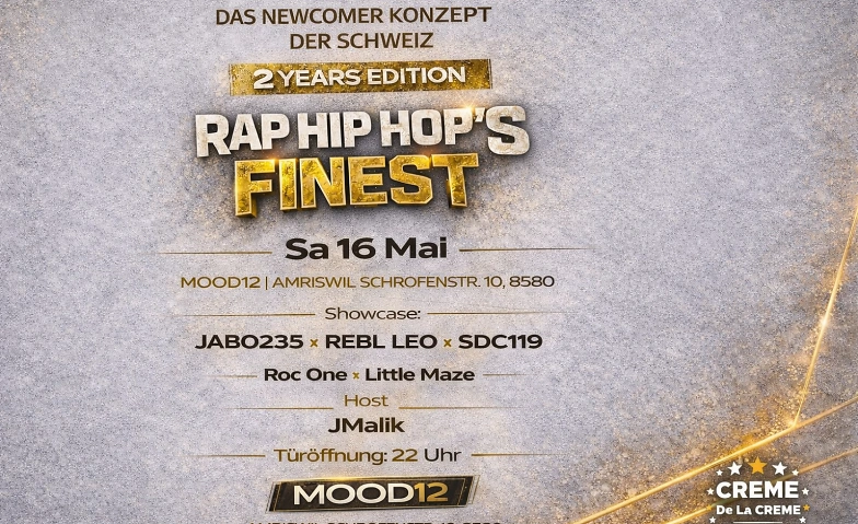 2Years RapHipHopSFinest Sa16Mai Mood12 Club Amriswil Mood12, Schrofenstrasse 12, 8580 Amriswil Tickets
