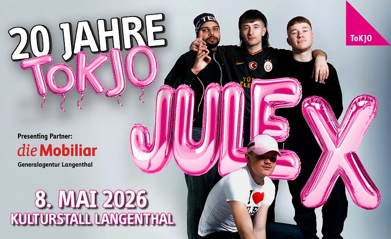 Zum Jubiläum verwandeln wir den Kulturstall Langenthal in eine Konzertbühne und haben dafür niemand Geringeren als Jule X & Crew eingeladen: Der Berner Rapper hat sich mit Songs wie «Dr DJ isch» und «Zistig» sowie seinen mitreissenden Live-Auftritten zu einem der aufregendsten Rap-Acts der Schweiz etabliert. Zusammen mit seiner Vokuhila Mafia bringt er den Kulturstall garantiert zum Beben.