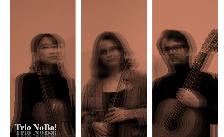 Trio NoBa! is an ensemble dedicated to performing new music. The trio was founded in Basel in 2025 by young musicians trained in both classical and contemporary performance practice, improvisation, and orchestral and ensemble playing. Inspired by the richness and intimate sonic atmosphere of their instrumental combination, they decided to deepen and expand the trio format: both through the interpretation of works by established 20th-century composers and through the exploration and commissioning of new pieces by young artists.