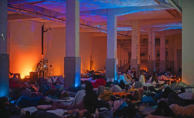 OSOMO’s Horizontal Concert unfolds as a dynamic journey of electronic sound waves interwoven with analog frequencies, creating spaces for pause, retreat, and contemplation away from the outside world and its frantic pace. OSOMO’S music carries you away, a soundscape in which listeners can let themselves go with their own thoughts, feelings, and physical sensations, and rest. You, the participant, are invited to intuitively follow your own personal path into the space of this “transportive music” and guide your own inner journey to whatever place you wish to go within yourself in that very moment, welcoming what is present here and now. It is a journey that leads to different places for each participant.