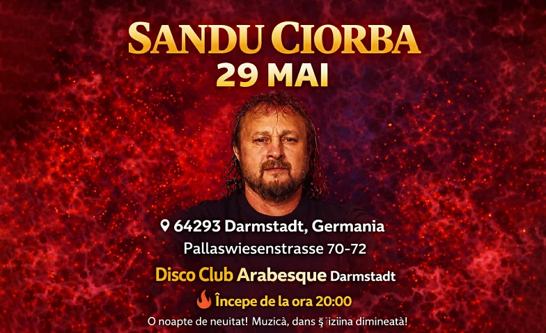 Pregătește-te pentru o seară de neuitat! Sandu Ciorba, cel mai iubit și energic artist de muzică țigănească din România, urcă pe scenă la Arabesque Club din Darmstadt pentru un concert live exploziv.