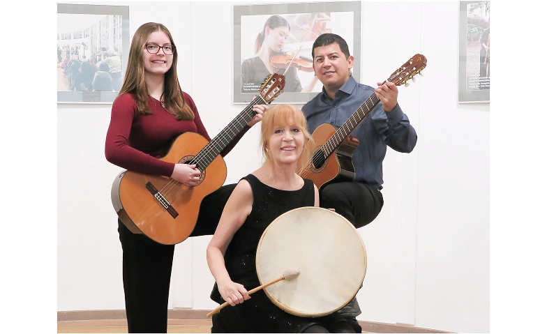 Unter dem Motto „Ethnosongs & Instrumentalstücke aus Europa und Lateinamerika“ lädt das neu gegründete Trio zu einem Konzertabend ein, der unterschiedliche musikalische Traditionen miteinander verbindet. Jedes Stück erzählt dabei seine eigene Geschichte und spiegelt die kulturelle Prägung seines Ursprungslandes wider. So berichtet „El Pozo Amargo“ von einer alten Legende aus Toledo über den „bitteren Brunnen“, der für unerfüllte Liebe und tragisches Schicksal steht. „Amara Terra Mia“ aus Süditalien ist eine eindringliche Klage über das Verlassen der Heimat und die damit verbundene Sehnsucht. Das venezolanische Lied „Moliendo Café“ greift mit seinem charakteristischen Rhythmus das gleichmäßige Drehen einer Kaffeemühle auf und lässt so den Alltag auf einer Plantage hörbar werden.
