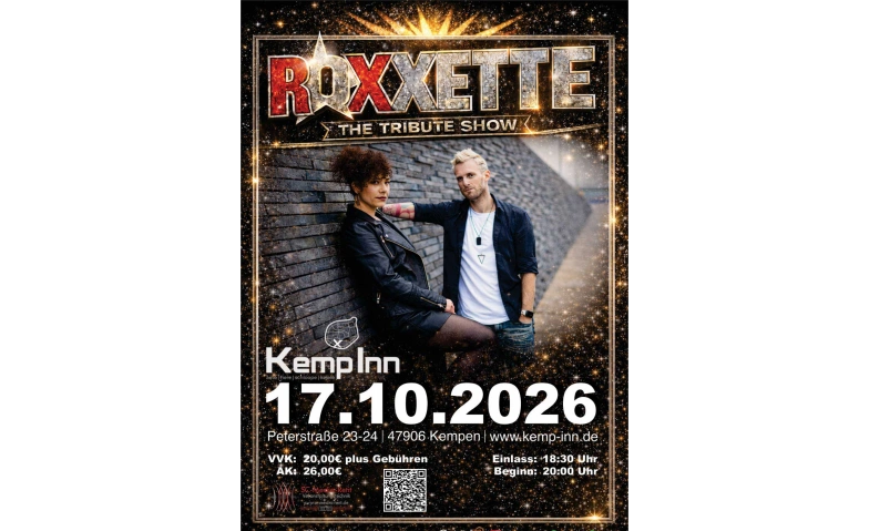 Die Tribute-Band ROXXETTE steht für energiegeladene Hits aus drei Jahrzehnten einer der weltweit erfolgreichsten Bands: Roxette. Das Repertoire von ROXXETTE wartet mit bekannten Hits wie „The Look“, „Listen To Your Heart“, „How Do You Do!“, „It Must Have Been Love“ oder „Joyride“ auf. Um den Spannungsbogen über den ganzen Auftritt aufrecht zu halten, wird aber auch ein Blick auf weniger bekannte Titel der schwedischen Hitfabrik gegeben, die für die eine oder andere Überraschung sorgen sollten. Wie schon das Original überzeugt auch das von ROXXETTE-Frontduo Edita Abdieski (X-Factor 2010) und Marius „Muri“ Müller (The Voice of Germany 2024) angeführte Tribute-Band mit einer mitreißenden Bühnenpräsenz sowie eingängigen Songs, die einfach jeder kennt und die jeden auf die Tanzfläche treiben. Stillsitzen? Bei ROXXETTE nicht möglich!