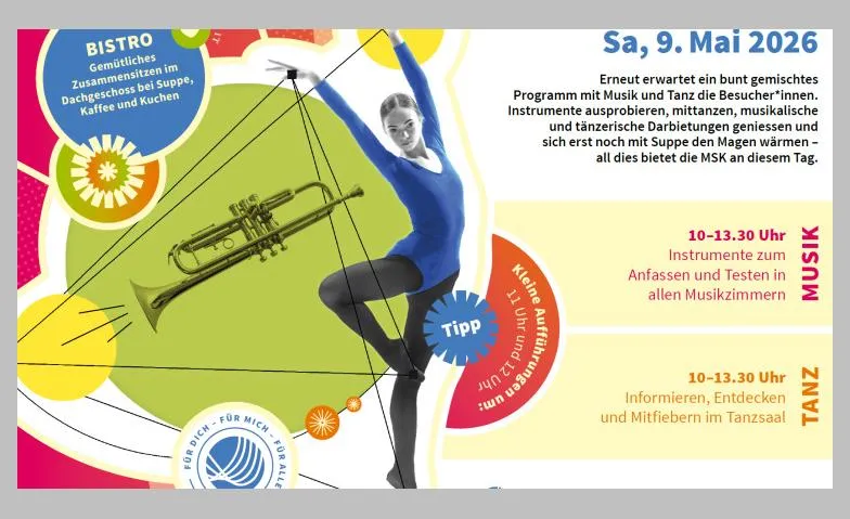 Die Welt der Musik und Bewegung wird aus nächster Nähe erlebbar. Instrumente können gehört, gesehen und ausprobiert werden.