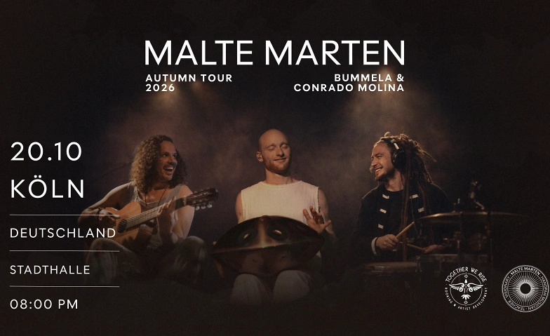 Im Oktober 2026 startet der Handpan Künstler Malte Marten gemeinsam mit dem Perkussionisten Conrado Molina und dem Multiinstrumentalisten Bummela seine Herbst Tour durch Europa.