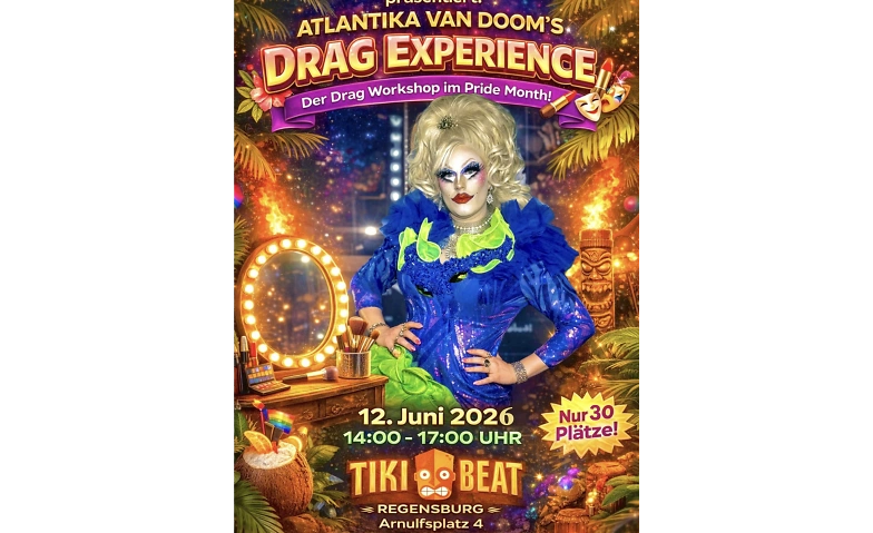 Im Pride Month findet am 12.06.2027 ein besonderer Drag Workshop mit Atlantika van Doom® und weiteren Drag Artists statt. Drei Stunden voller Tipps, Tricks und ehrlicher Einblicke aus der Praxis. Hier wird gezeigt, wie Drag wirklich funktioniert und Teilnehmer können selbst ausprobieren, was alles möglich ist. 💄👑