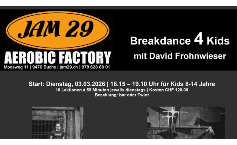 Breakdance 4 Kids JAM 29 Aerobic Factory, Moosweg 11, 9470 Buchs SG Tickets