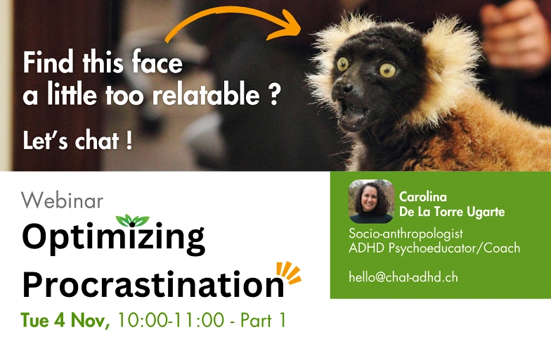 Struggling to start the thing? Great at making a plan but then struggle to make it happen? Would you like to relax guilt-free? Let's chat at the next webinar on Optimizing Procrastination !