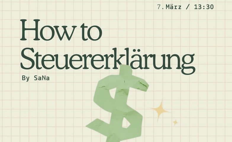 Am 7. März veranstalten wir einen „How to Steuererklärung ausfüllen“-Nachmittag. Eine Person mit Profiwissen wird vor Ort sein und euch Schritt für Schritt zeigen, wie ihr eure Steuererklärung korrekt und unkompliziert ausfüllt.