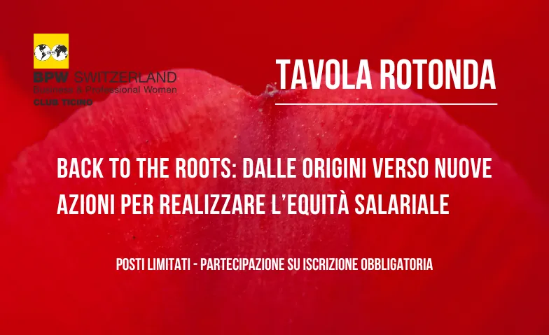 In occasione dell’Equal Pay Day, BPW Ticino organizza la tavola rotonda “Back to the Roots: dalle origini verso nuove azioni per realizzare l’equità salariale”, un momento di confronto dedicato al tema della parità retributiva e alle azioni concrete necessarie per ridurre il divario salariale di genere.