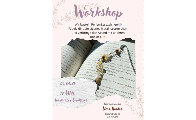 Lesezeichen Workshop Dear Reader Buchhandlung, Enzianstraße 15, 07545 Gera Tickets