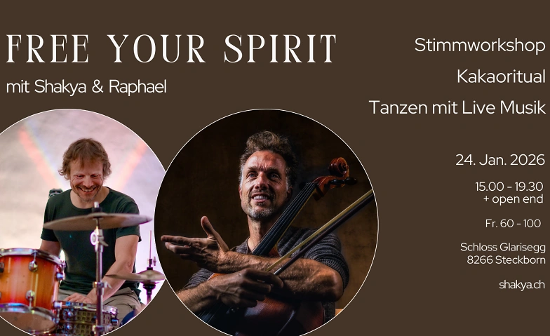 Im dritten Teil kreieren Shakya und Raphael Live-Musik und Klanglandschaften aus dem Moment heraus, die dir den Boden bieten, auf dem du dich ausbreiten, erforschen, feiern und geniessen kannst. Alle deine Töne, Bewegungen und Impulse sind willkommen. Der Mut, dich wirklich zu zeigen und lebendig zu sein ist das Geschenk und die Inspiration für andere, es genau so zu tun. So werden wir miteinander zum Tanz des Universums, das wir alle sind …
