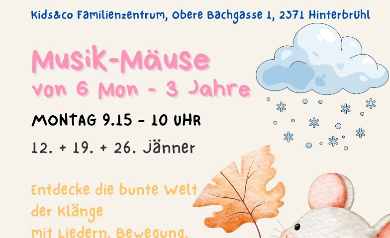Musik-Mäuse mit Daniela - 3er Block Kids&co Familienzentrum Hinterbrühl, Obere Bachgasse 1, 2371 Hinterbrühl Tickets