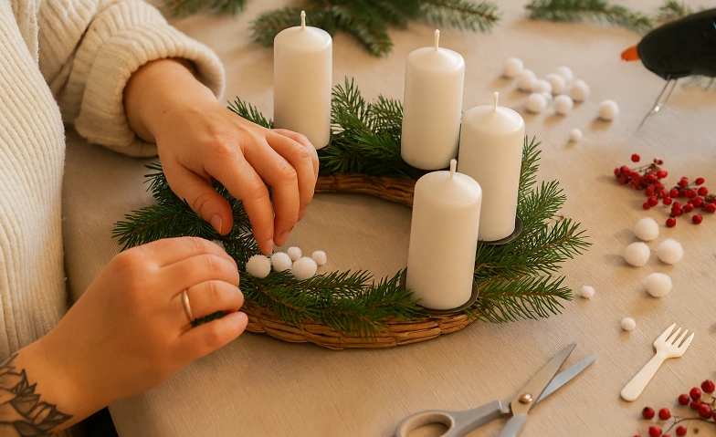 Von 14:00 bis 16:30 Uhr gestalten wir gemeinsam wunderschöne Adventskränze – ganz nach euren Vorstellungen. Ob klassisch mit Tannengrün und Kerzen oder modern mit Naturmaterialien – eurer Kreativität sind keine Grenzen gesetzt!