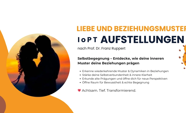 Suchst du ein tieferes Verständnis dafür, wie deine Beziehungsmuster entstanden sind, warum sich gewisse Dynamiken wiederholen oder wie deine Partnerwahl beeinflusst wird? Eine Selbstbegegnung nach IoPT (Identitätsorientierte Psychotraumatheorie nach Prof. Dr. Franz Ruppert) kann dich dabei unterstützen, innere Anteile zu erkennen, dich selbst besser zu verstehen und mehr Bewusstheit und Eigenverantwortung zu entwickeln.