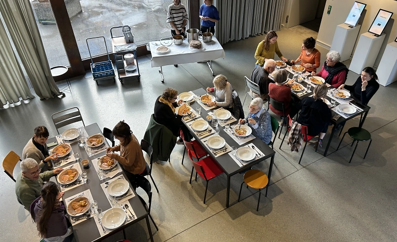 Anmeldung nötig (via Link), Bezahlung vor Ort: 19 Franken für Menü mit Salat und Wasser.