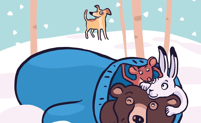 Im eiskalten Winterwald verliert der Holzfäller seinen Handschuh. Bald schon wird das Kleidungsstück von verschiedensten Tieren entdeckt und als Unterschlupf vor der klirrenden Kälte genutzt. Friedlich eingekuschelt schlafen die Tiere, bis der Hund des Holzfällers diesen erschnüffelt. Und nun?