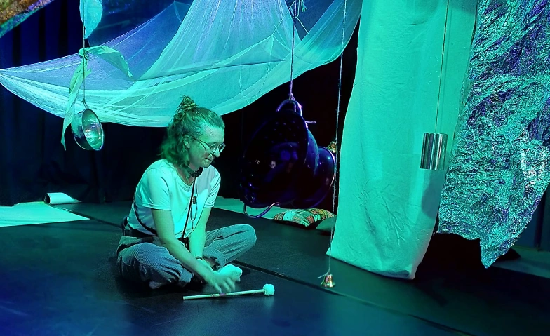 Die beiden Musikerinnen Silke Strahl und Vera Baumann entdecken im Mullbau verschiedenste Alltagsgegenstände und erschaffen mit ihnen eine hängende Klanglandschaft. Gemeinsam mit dem jungen Publikum erkunden sie diese kleine Welt.