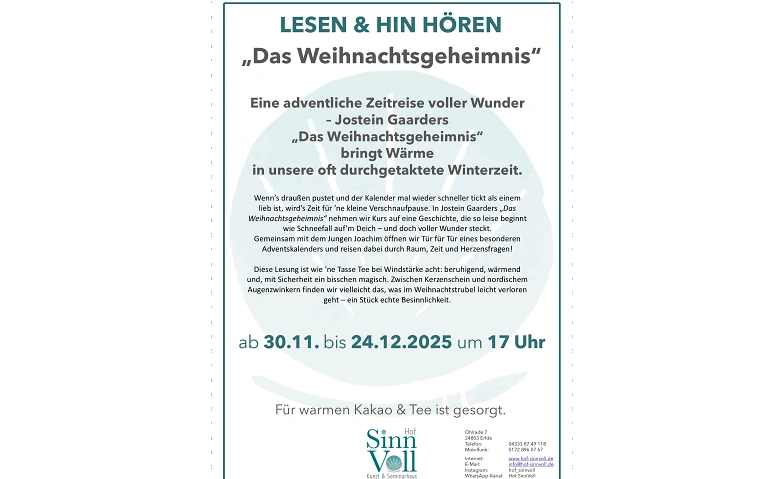 LESEN & HIN HÖREN  „Das Weihnachtsgeheimnis“ Hof SinnVoll "Kunst- und Seminarhaus", Ohlrade 7, 24803 Erfde Tickets